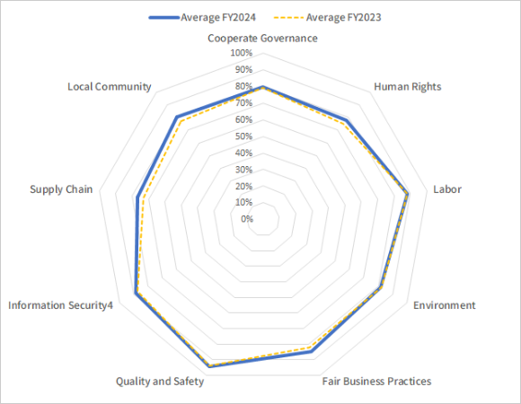 We consider suppliers with whom we have business relationships that exceed a certain transaction amount to be particularly important. We conduct regular surveys using questionnaires from the United Nations Global Compact Network Japan (GCNJ) for these important suppliers to promote continuous engagement. For suppliers with low scores, we review the results together and request improvements as necessary. In fiscal year 2024, we implemented improvement measures and engaged in dialogue with seven suppliers who had issues, particularly in the areas of human rights and the environment. As a result, we confirmed that two companies had made improvements. We will continue to engage with our suppliers through regular supplier CSR assessments to build a sustainable supply chain.