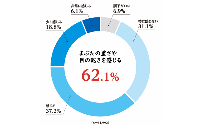 - 約6割が「まぶたの重さ・目の乾き」を日常的に自覚。