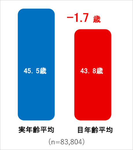 - 万博会場で測定する「目年齢」、平均は43.8歳となり、実年齢の平均(45.5歳)を下回る結果となりました。