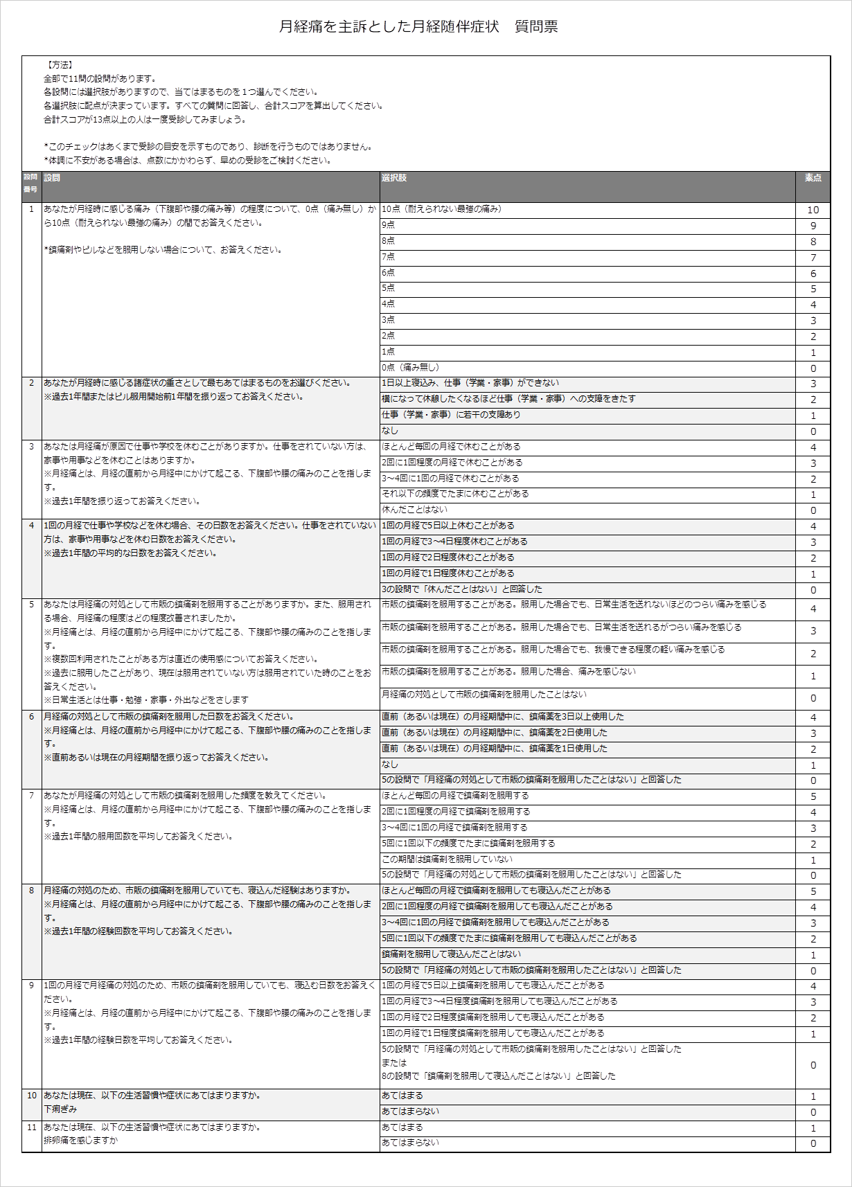 月経痛を主訴とした月経随伴症状に対する実態調査に基づく、受診勧奨評価指標の開発